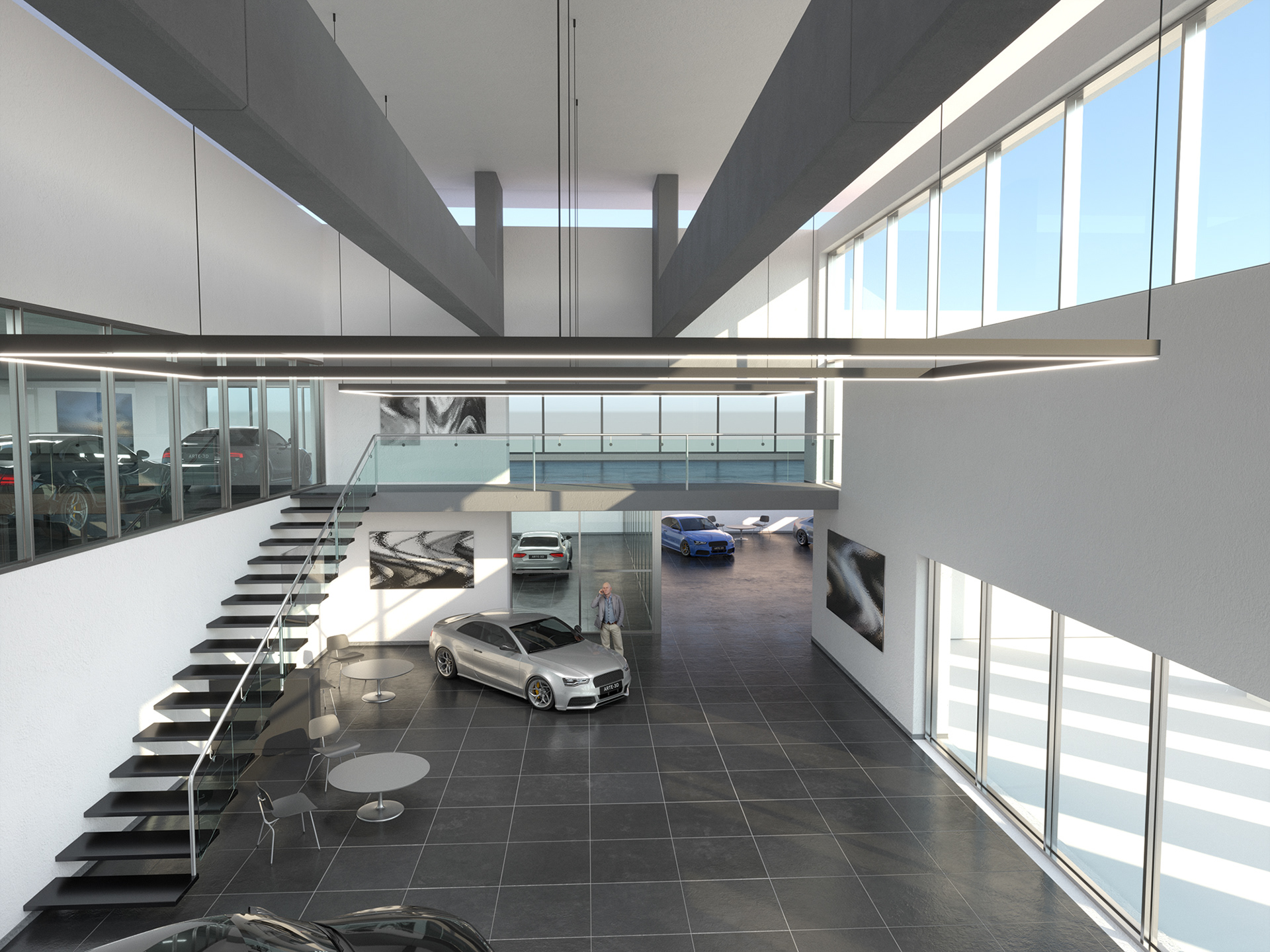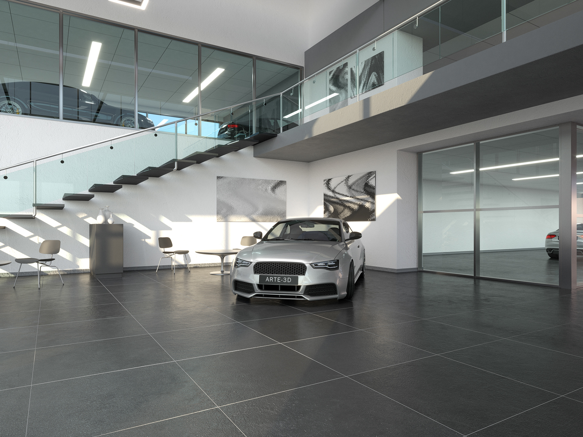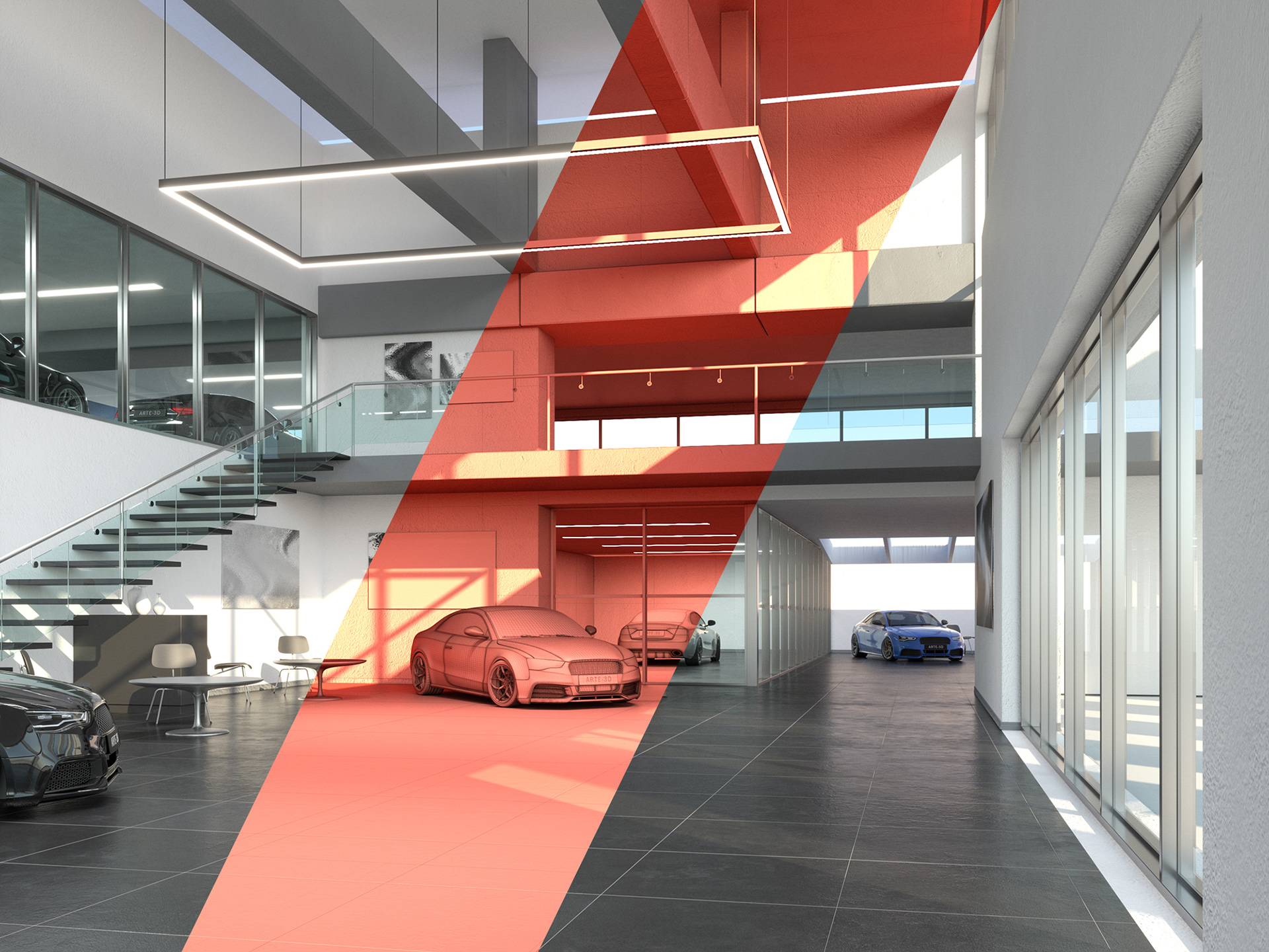Interior Scene 17 is a full CG scene consisting in a car dealership office building with lighting and render setup ready to use with V-Ray. The scene uses proxy files to optimize memory and overall increase performance while working with the scene.