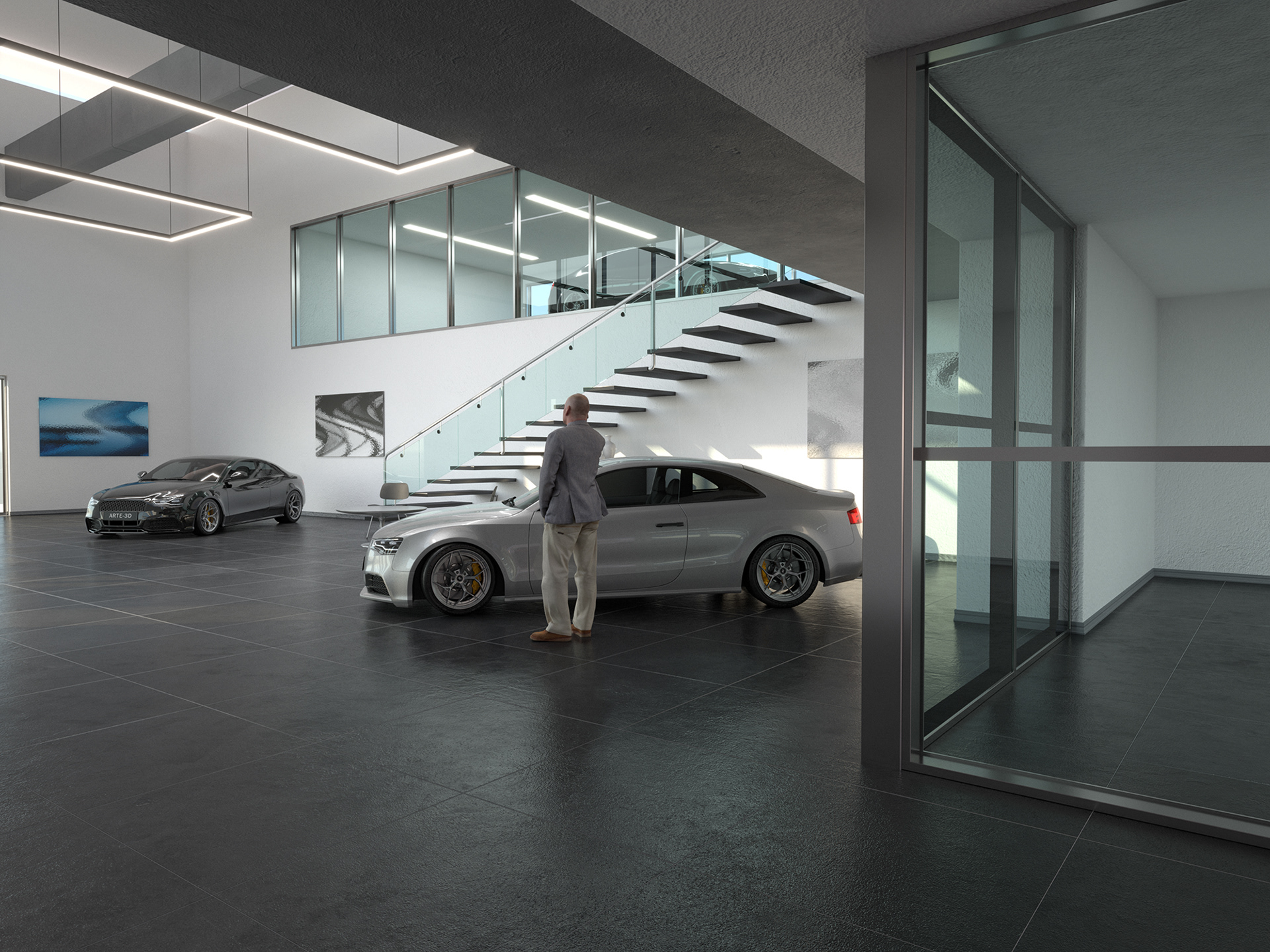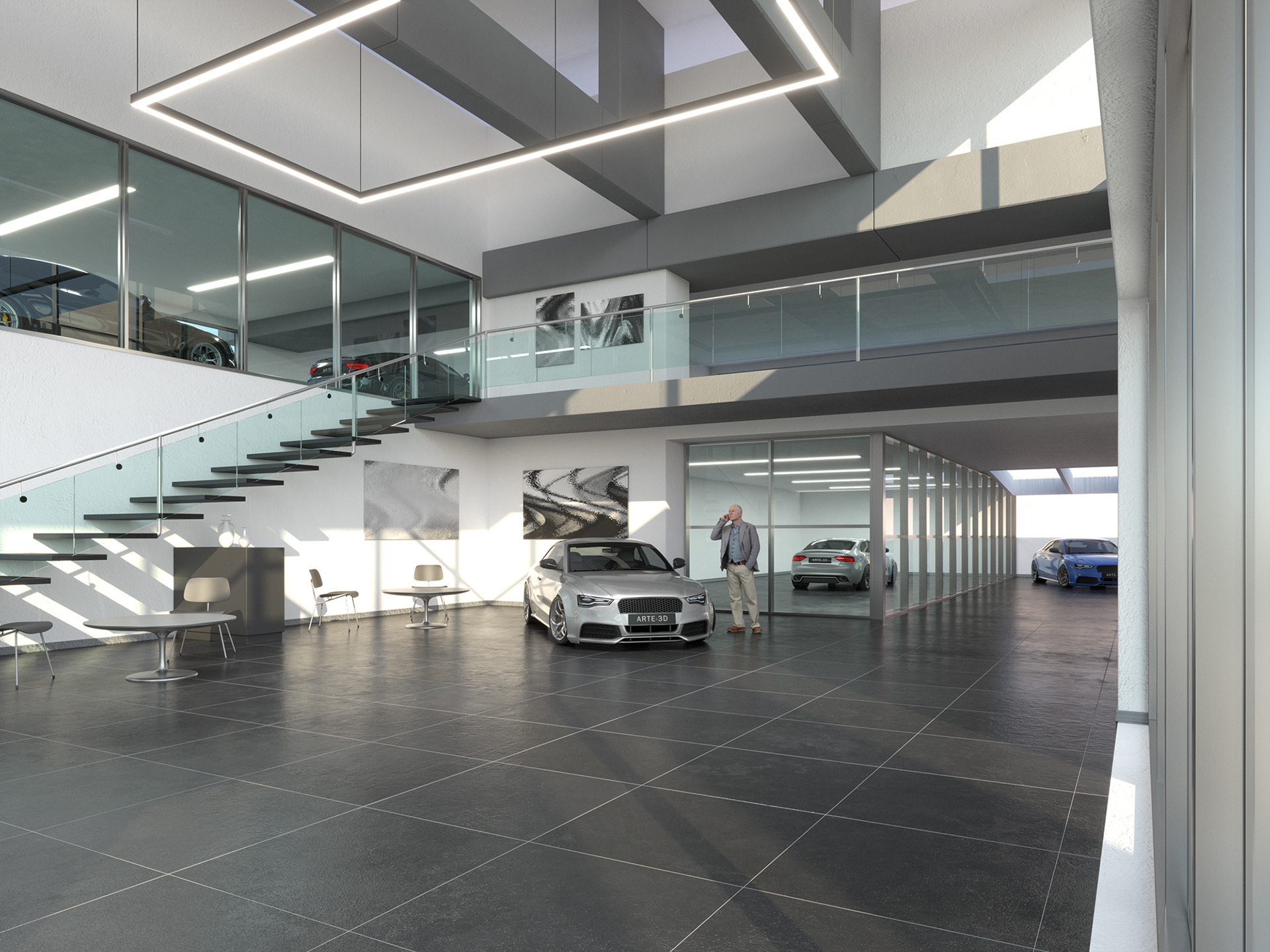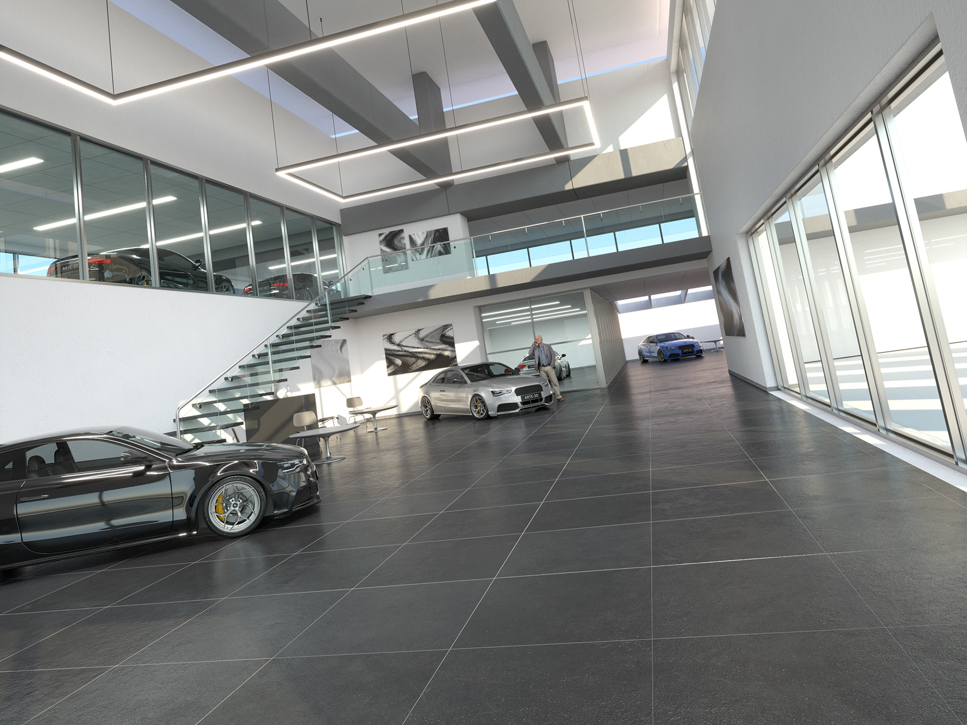Interior Scene 17 is a full CG scene consisting in a car dealership office building with lighting and render setup ready to use with V-Ray. The scene uses proxy files to optimize memory and overall increase performance while working with the scene.